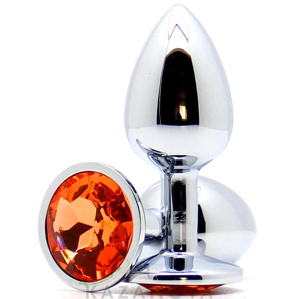 Втулка анальная металлическая средняя серебристая с янтарным стразом 018