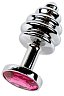 Втулка анальная Penthouse металлическая малая ребристая с красным стразом 242