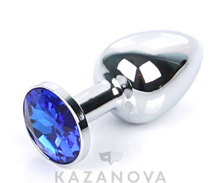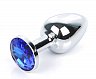 Втулка анальная серебристая малаяl металлическая серебристая с синим кристаллом