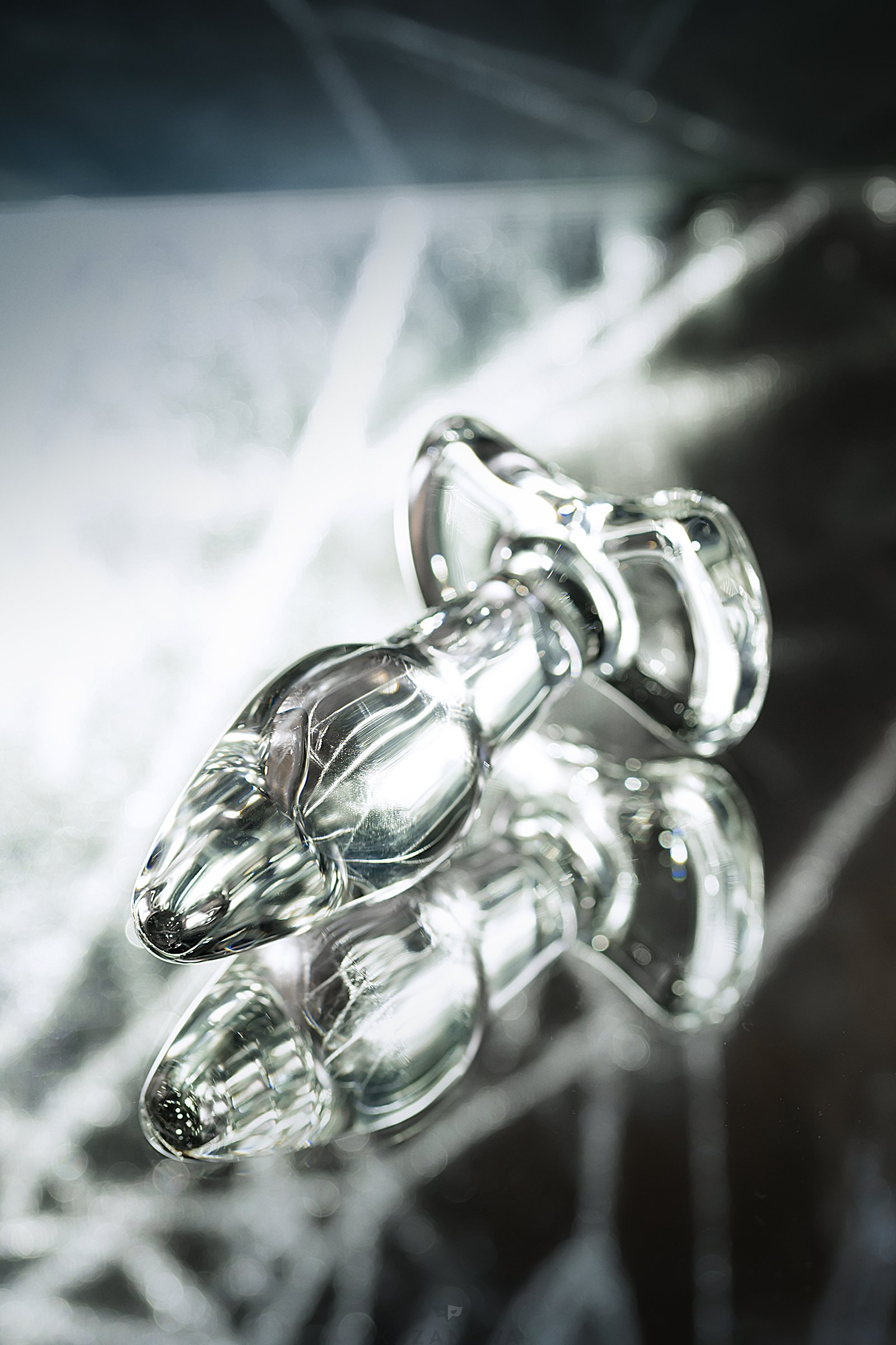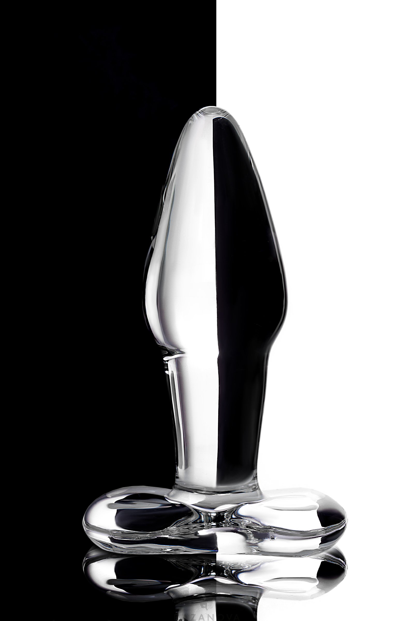Анальный плаг из каленого стекла. Материал полностью безопасен, не бьется. Легко нагревается от температуры тела или под струей теплой воды. В отличие от реалистичных материалов, стекло дает ощущение плотности и заполненности.