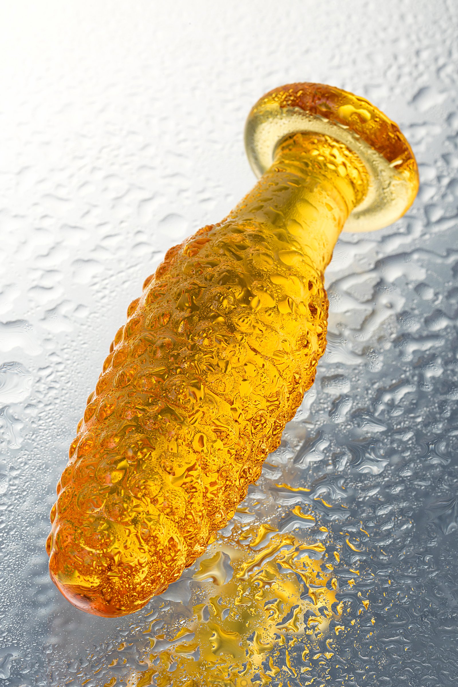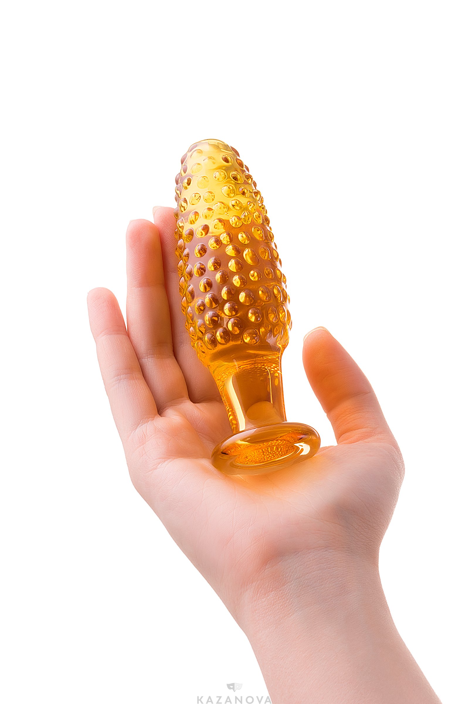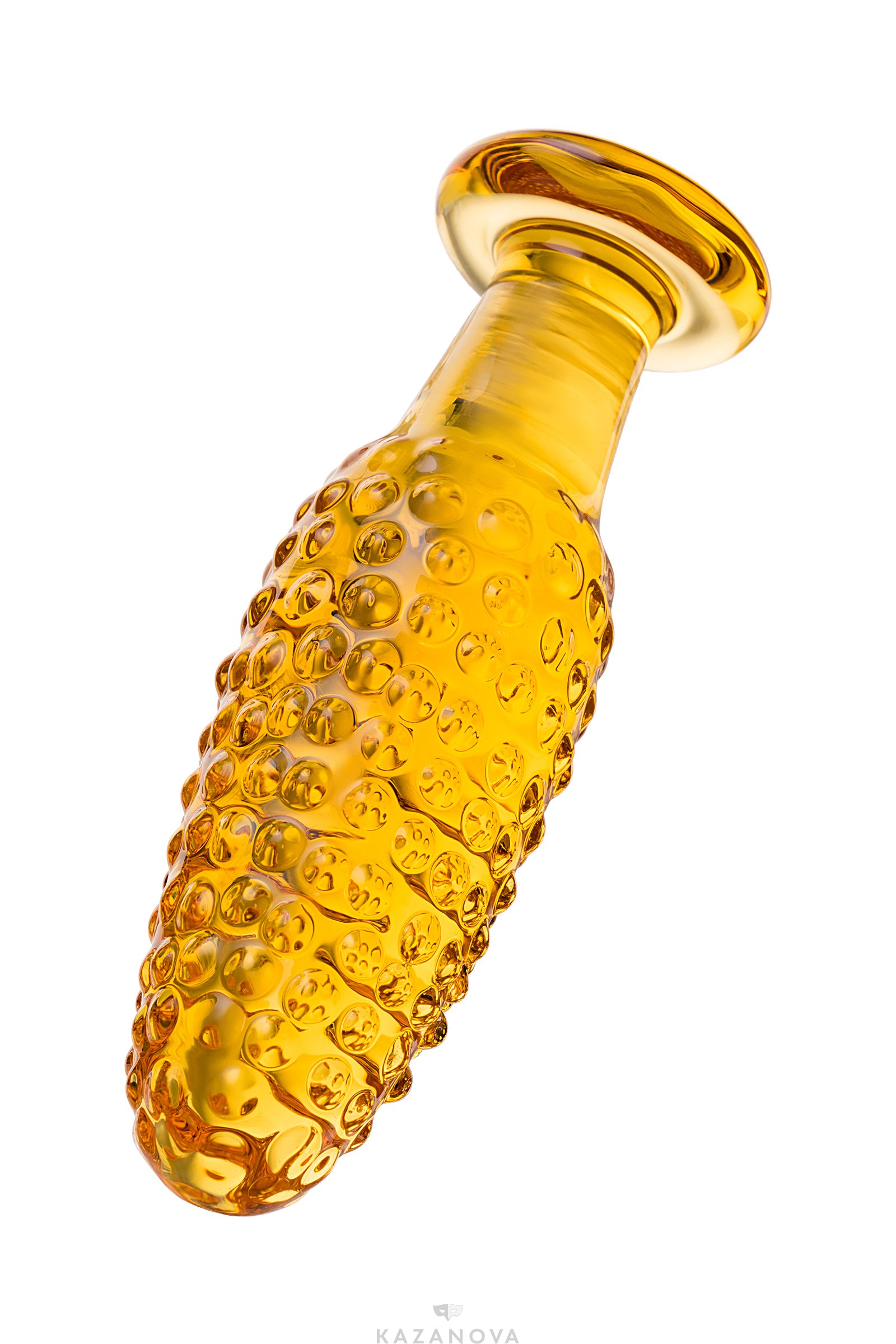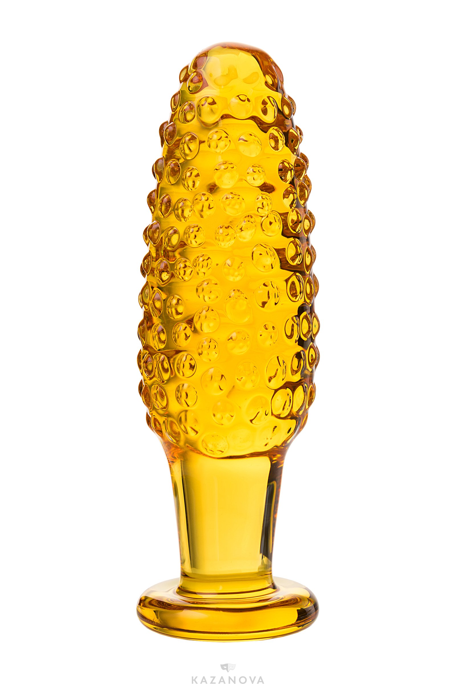 Втулка анальная Sexus Glass стеклянная рельефная желтая 12 см