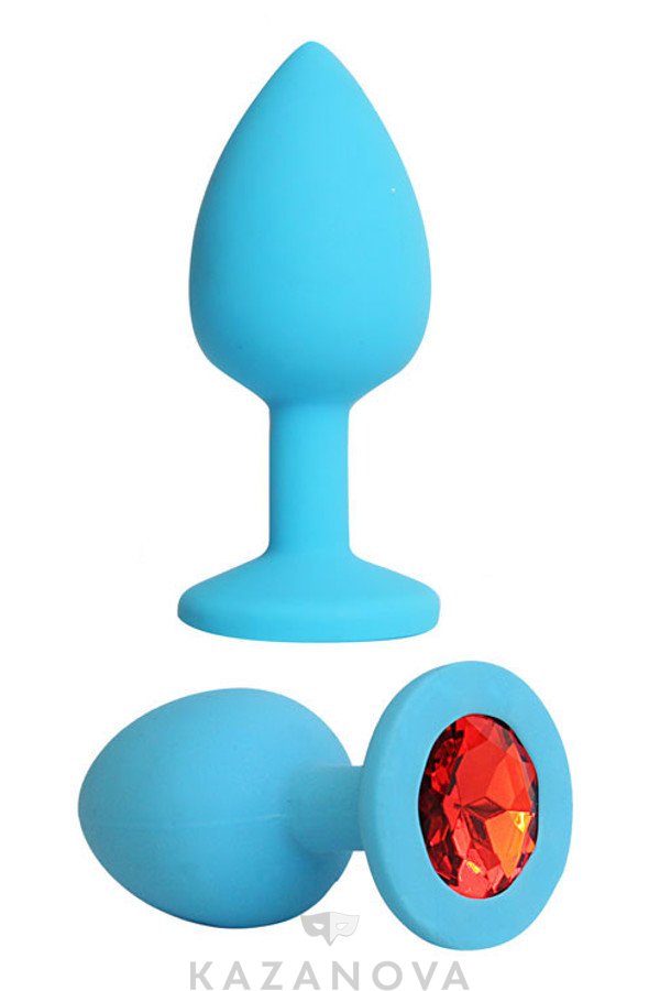 Втулка анальная Sexy Friend из силикона большая голубая с красным стразом 291