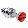 Втулка анальная Sitabella металлическая малая ребристая серебристая с стразом