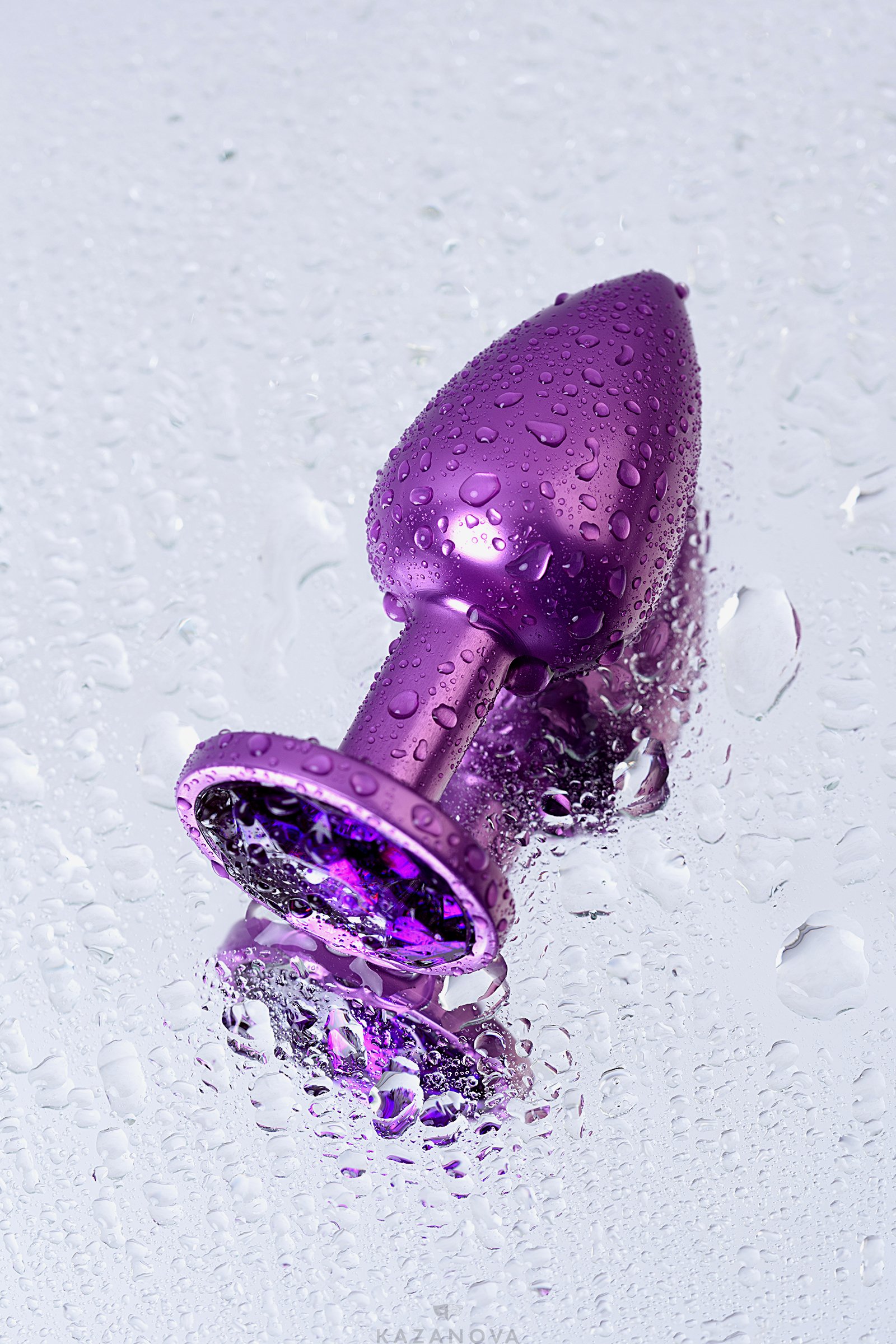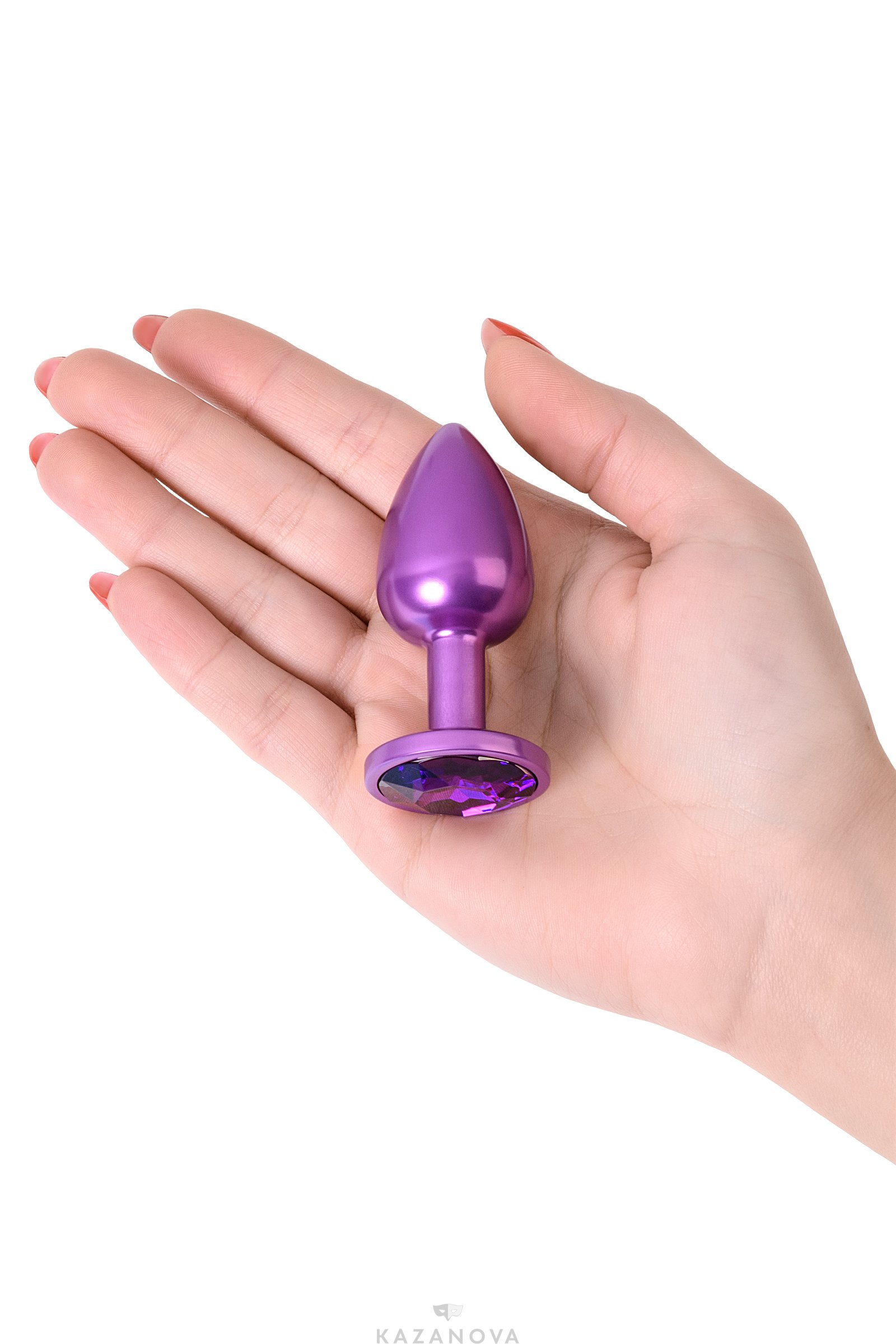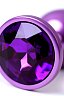 Втулка анальная Toyfa Metal металлическая малая фиолетовая с фиолетовым стразом 7,2 см 007