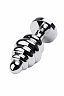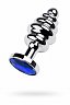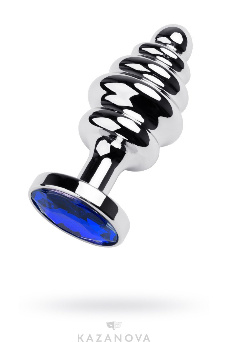 Втулка анальная Toyfa Metal металлическая малая рельефная серебристая с синим стразом 7 см 028