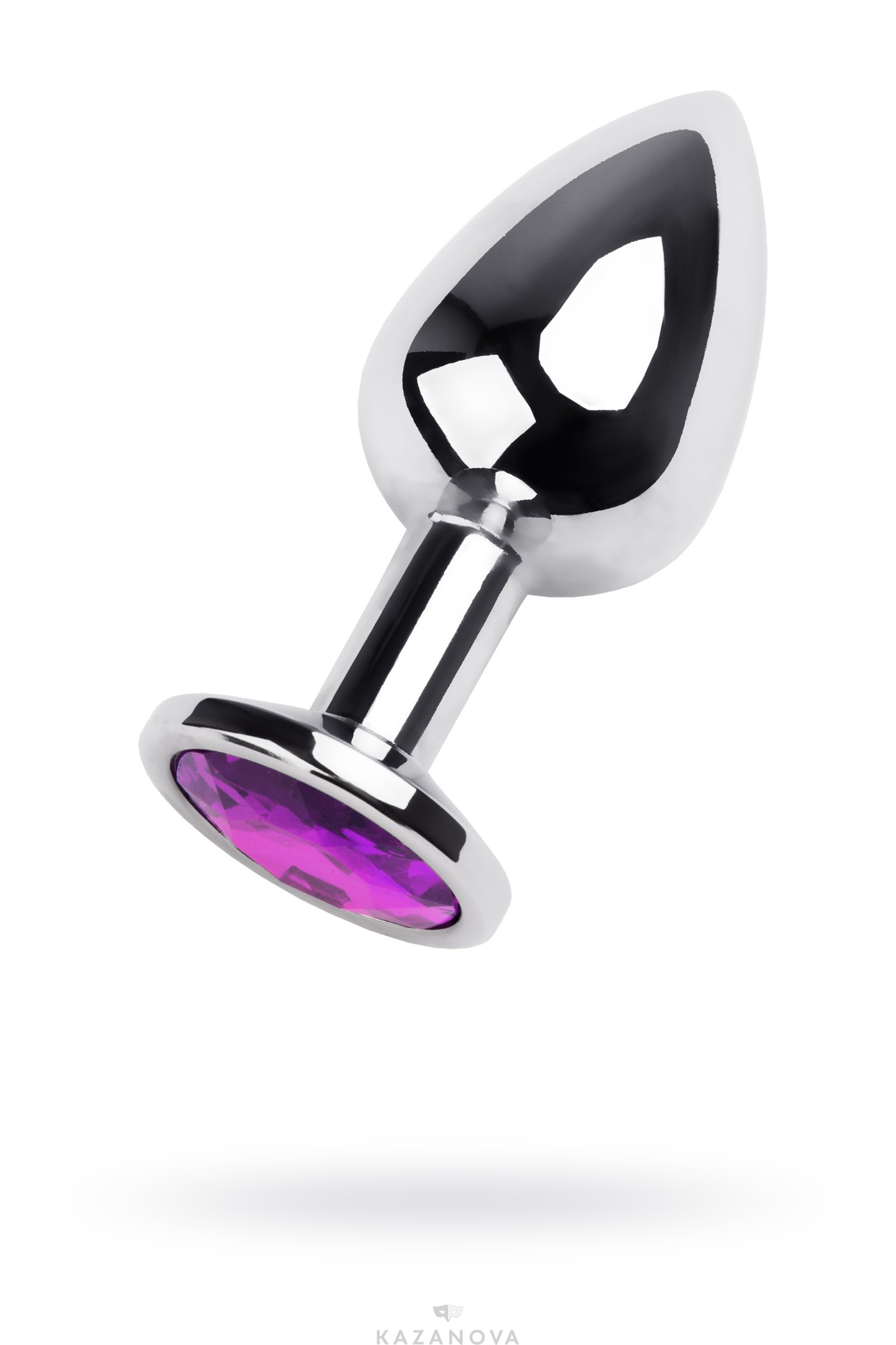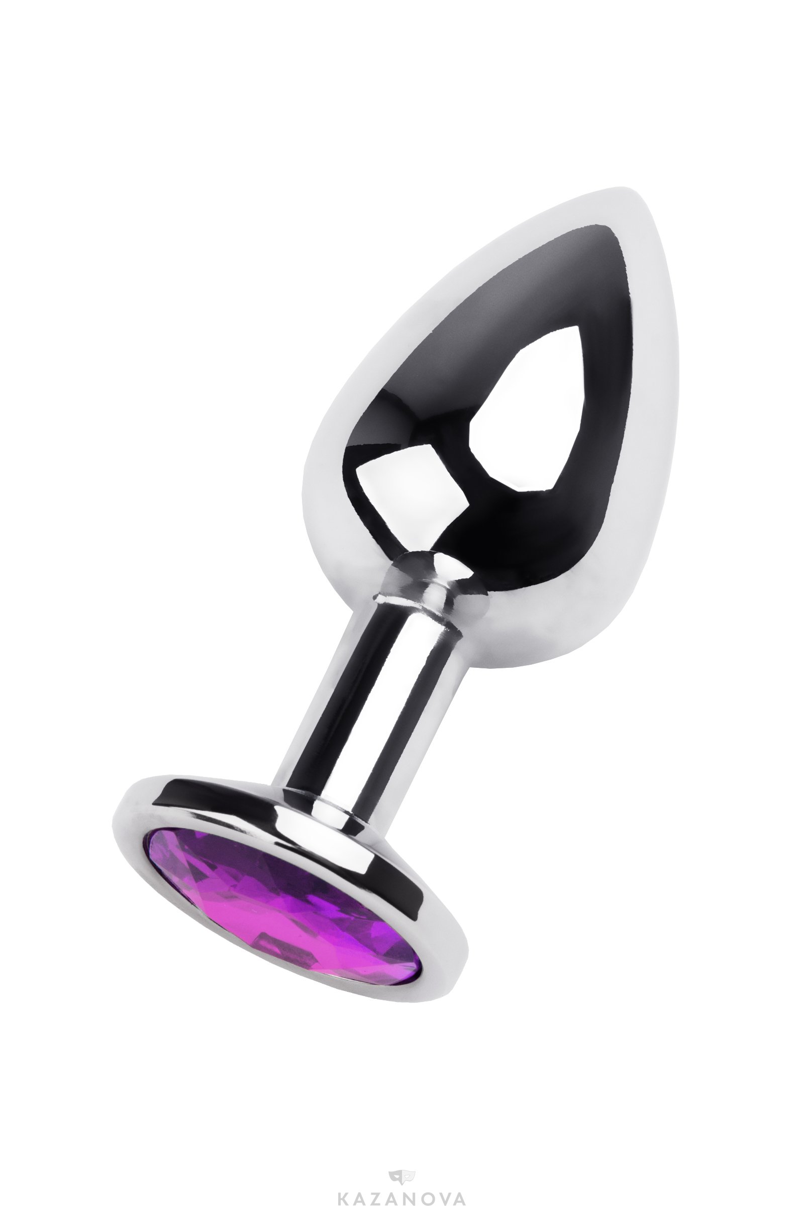 Втулка анальная Toyfa Metal металлическая малая серебристая с фиолетовым стразом 8 см 021