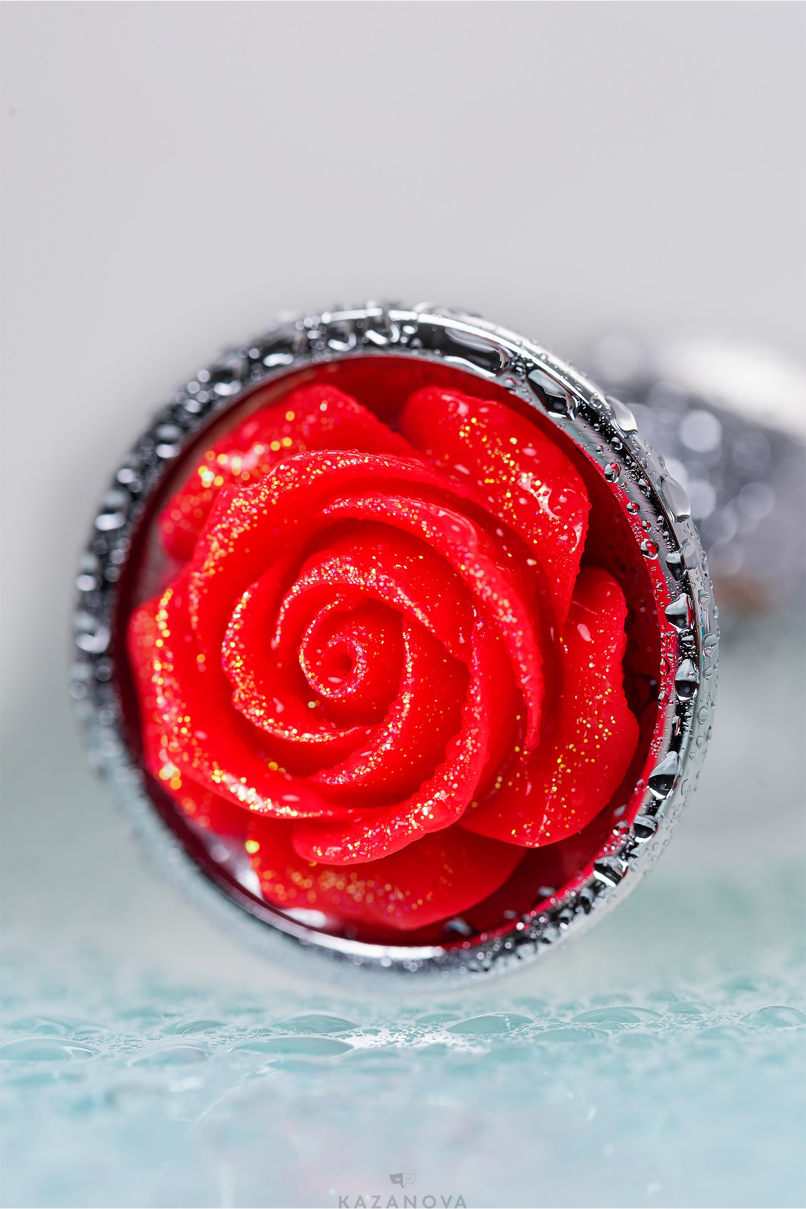 Втулка анальная Toyfa Metal металлическая малая серебристая со стразом в форме розы