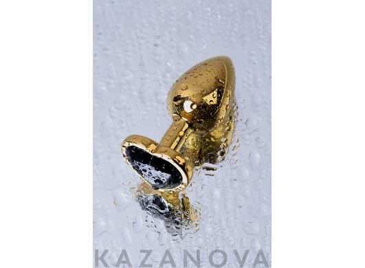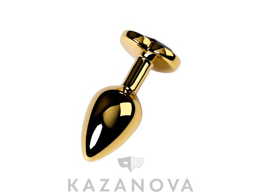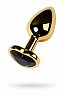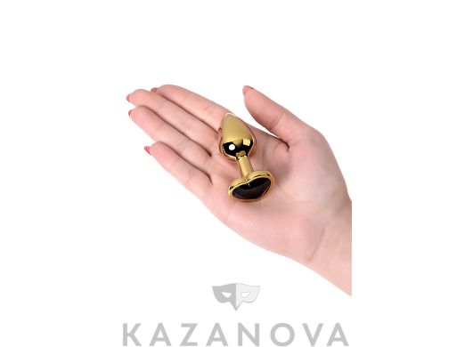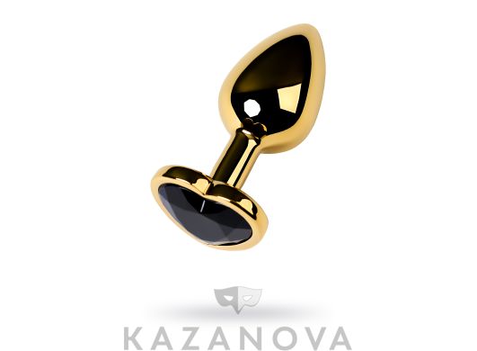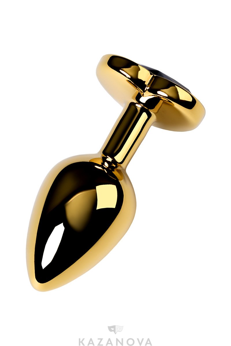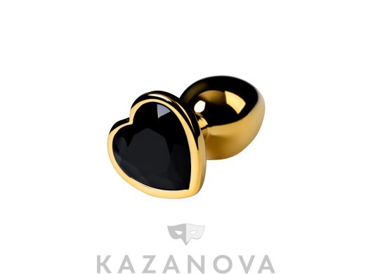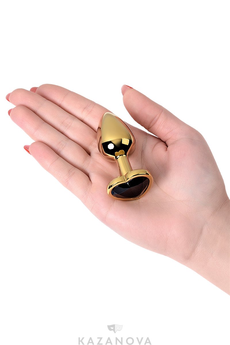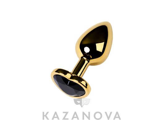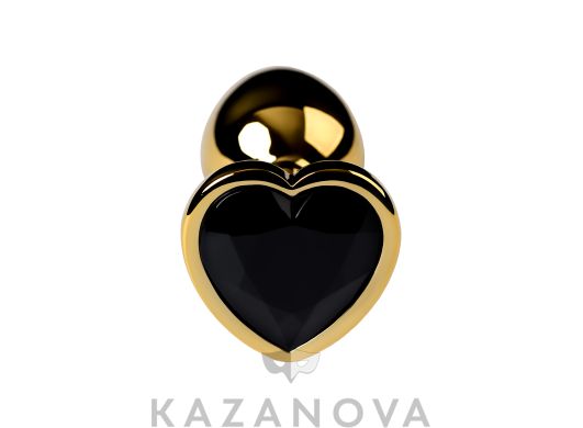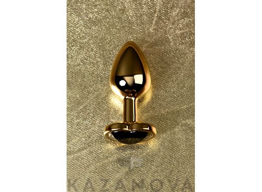 Втулка анальная Toyfa Metal металлическая малая золотистая с черным стразом в форме сердца 7 см 016
