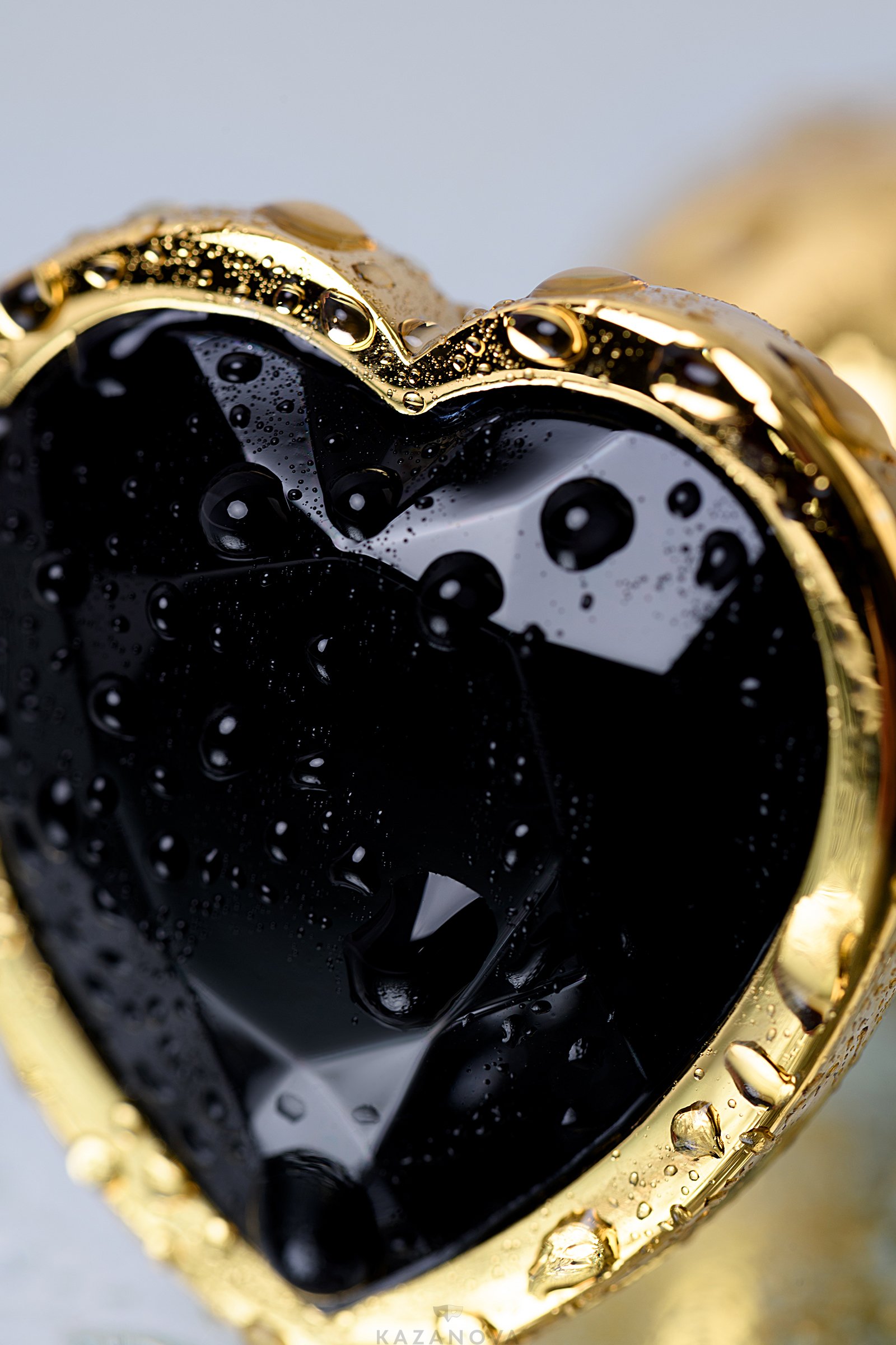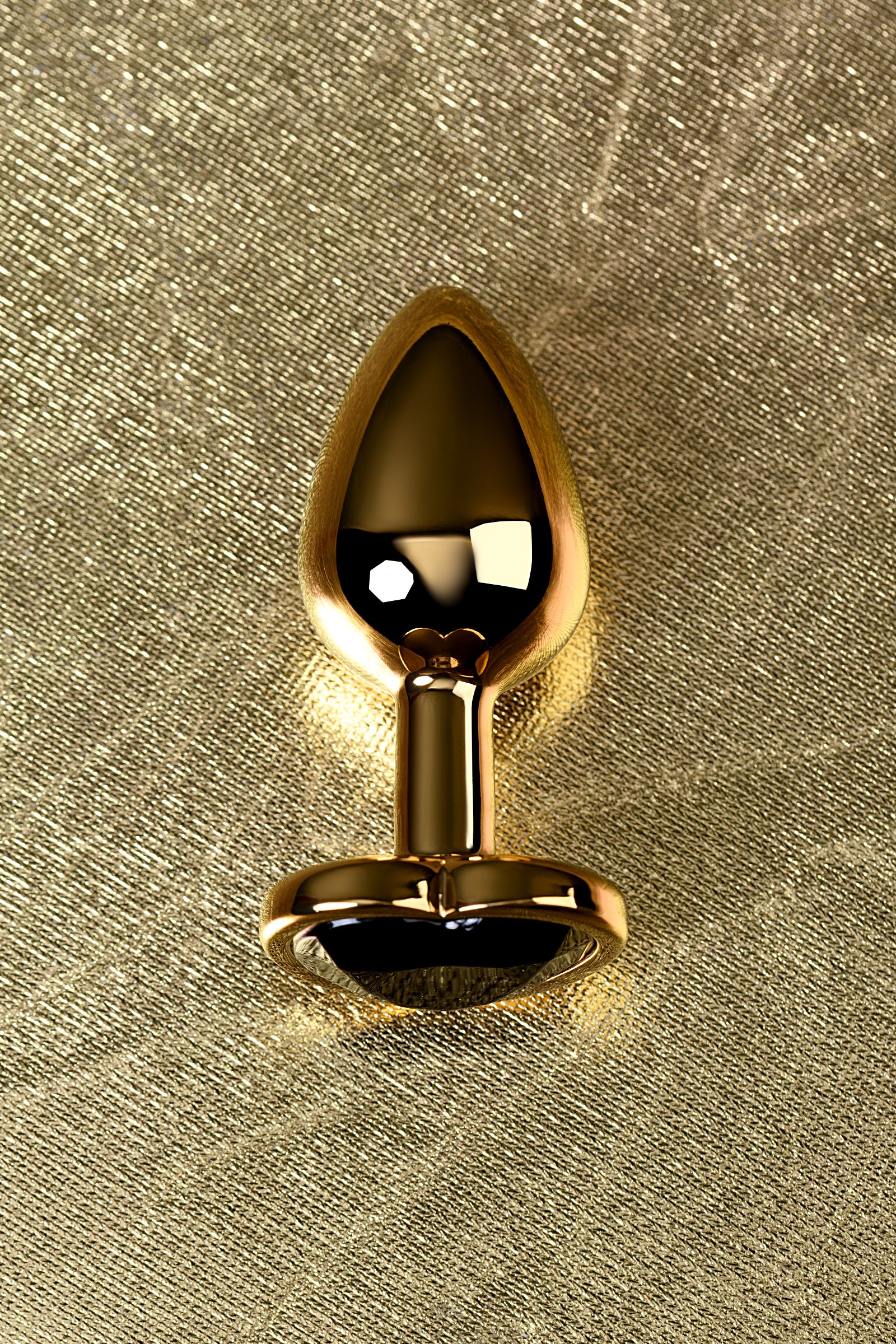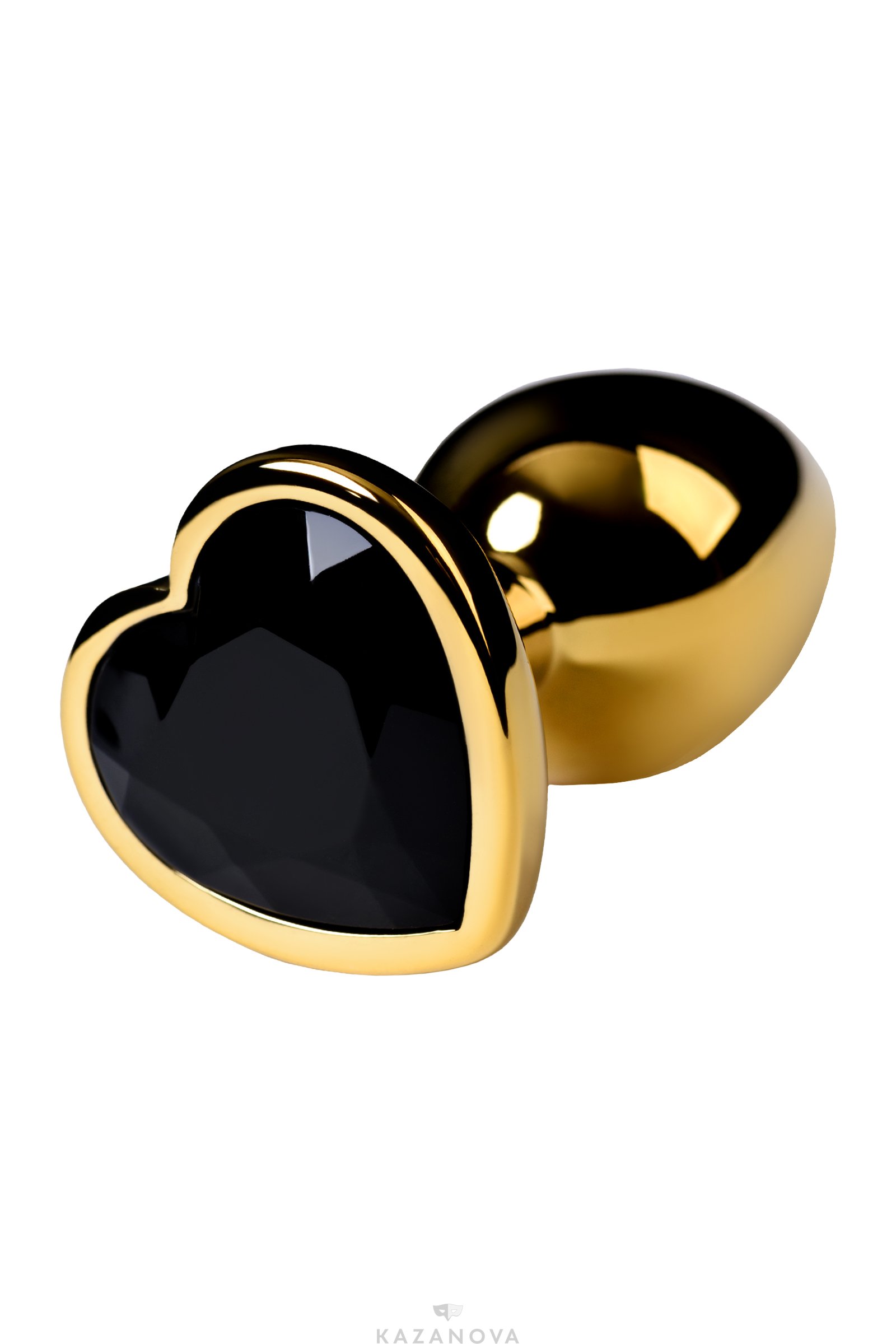 Втулка анальная Toyfa Metal металлическая малая золотистая с черным стразом в форме сердца 7 см 016