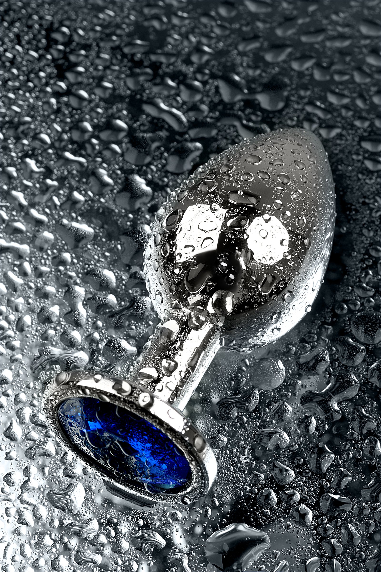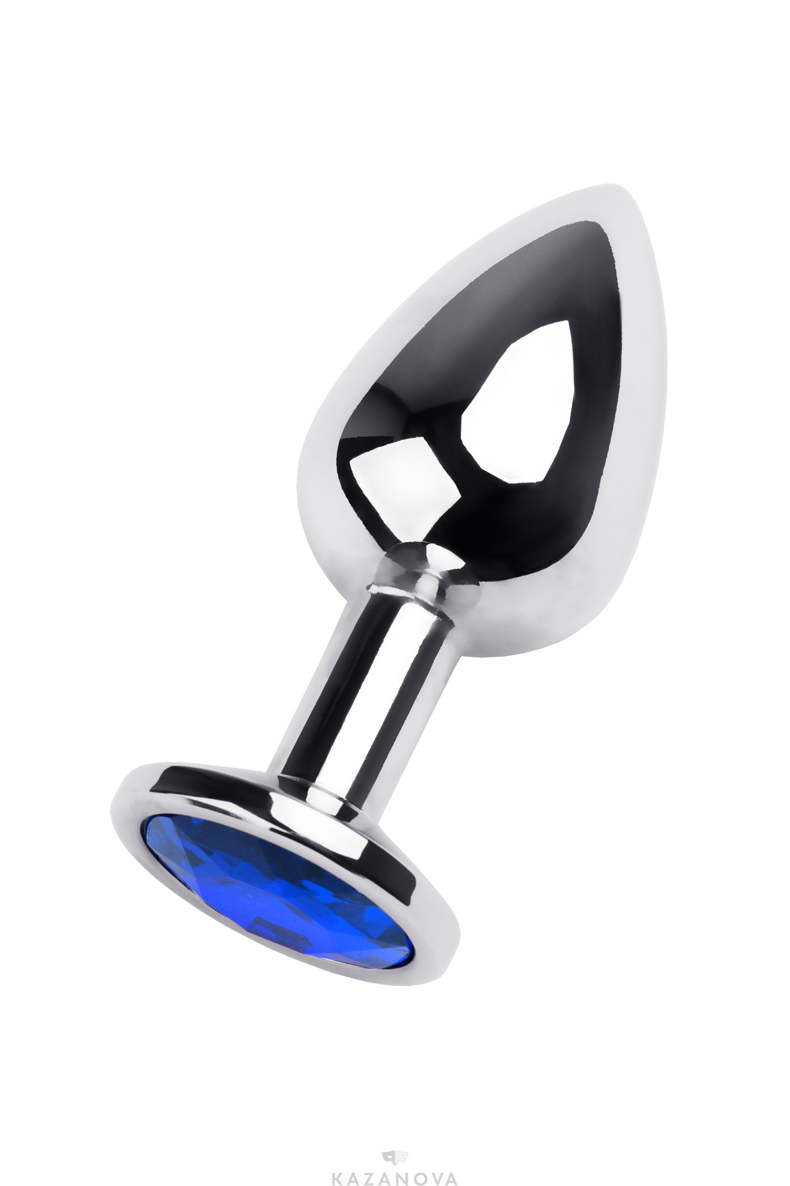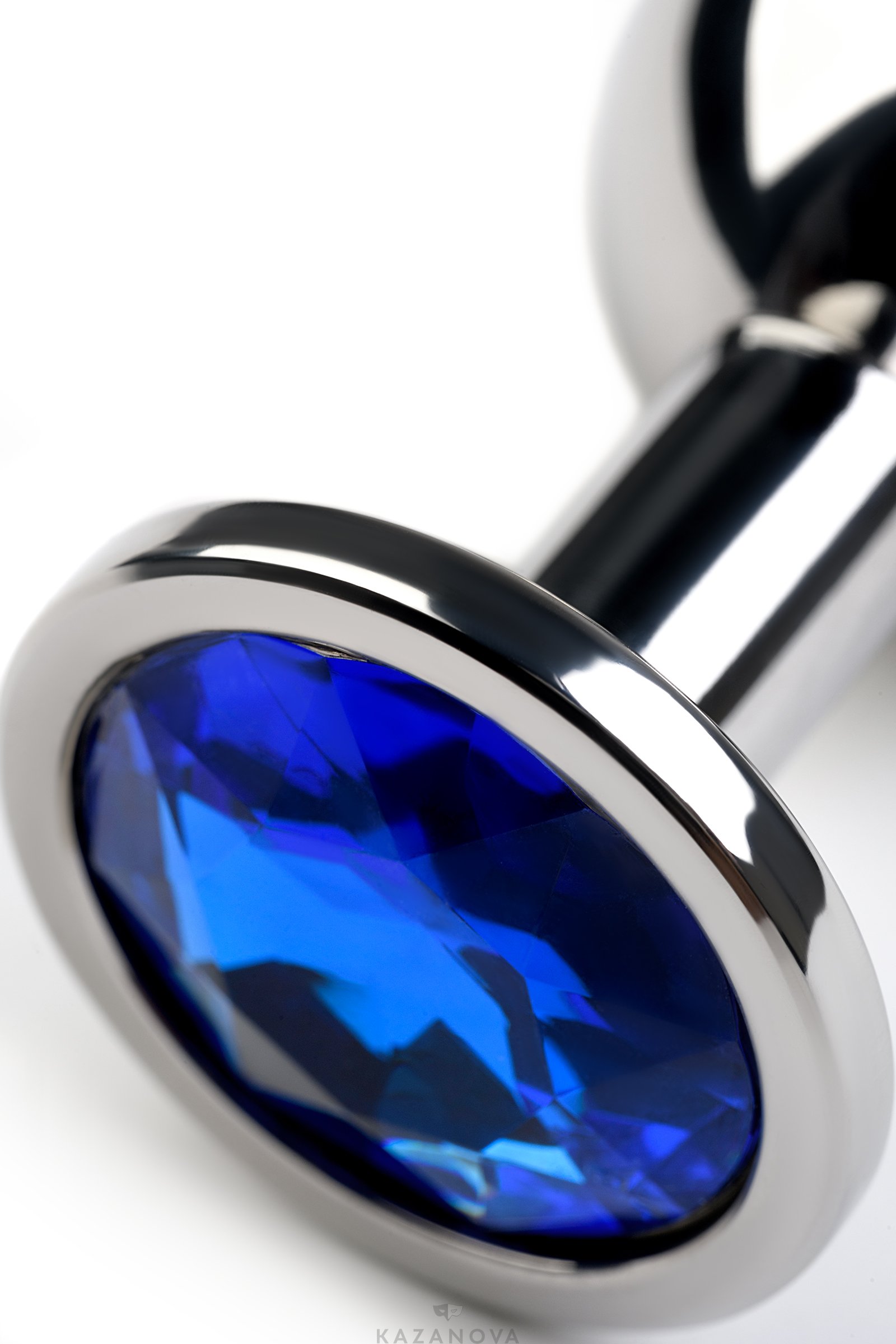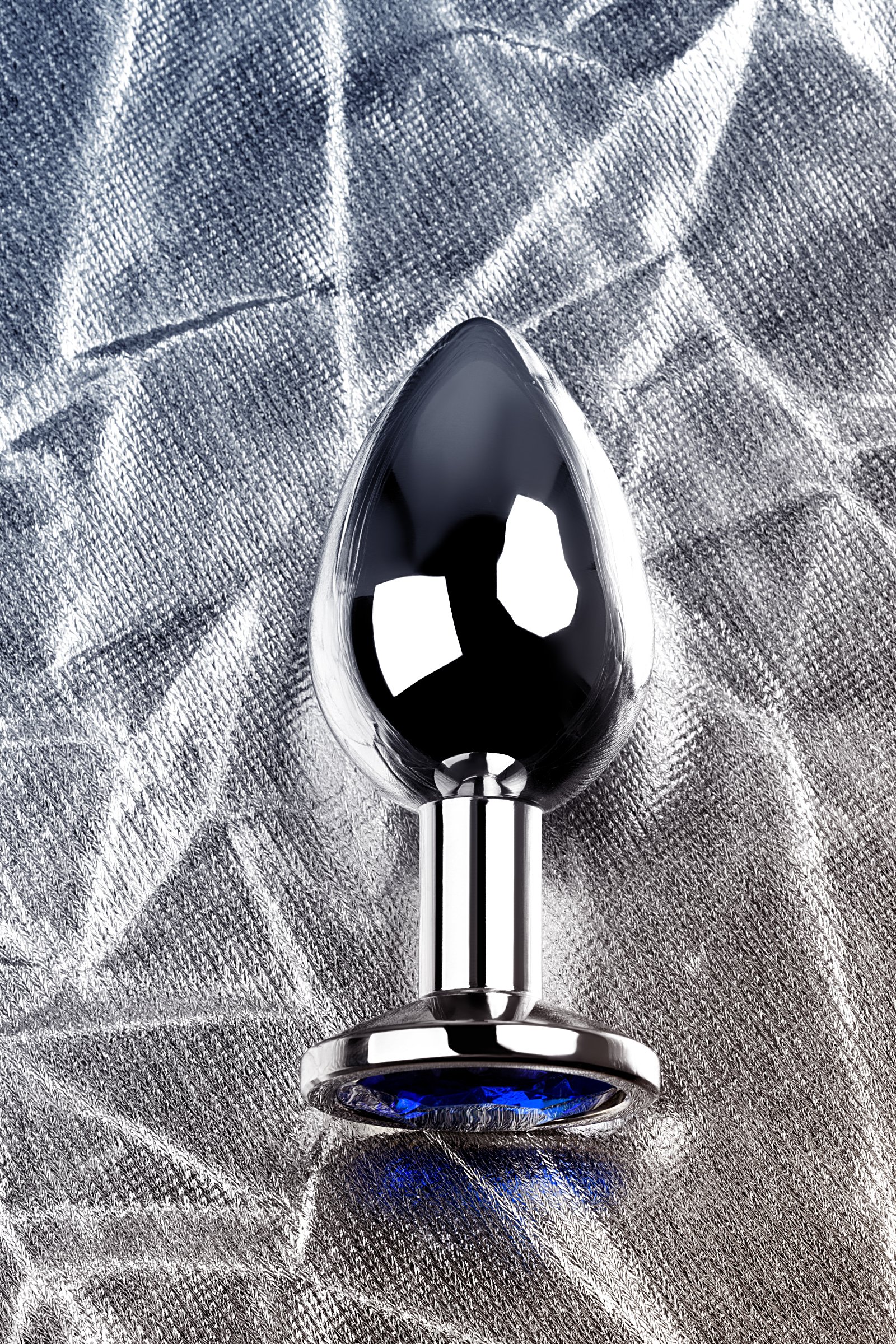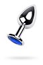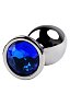 Втулка анальная Toyfa Metal серебристая с синим стразом 8см 094
