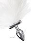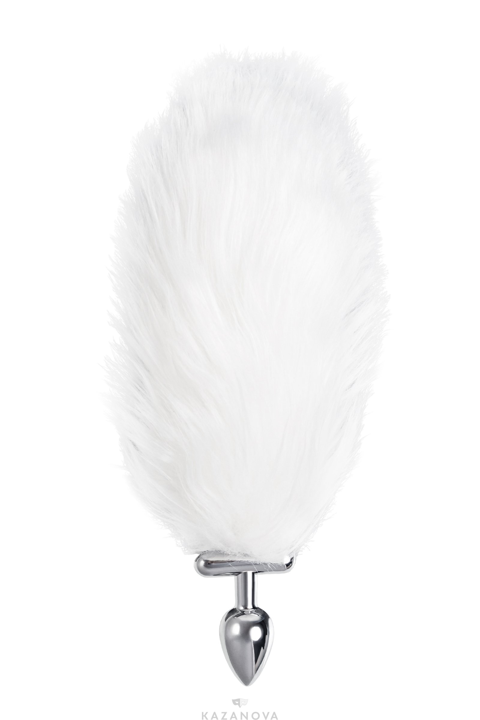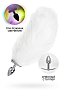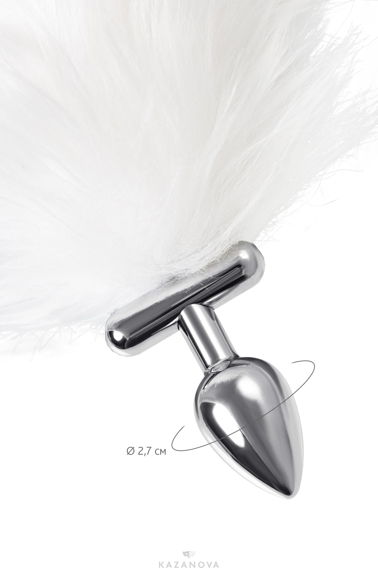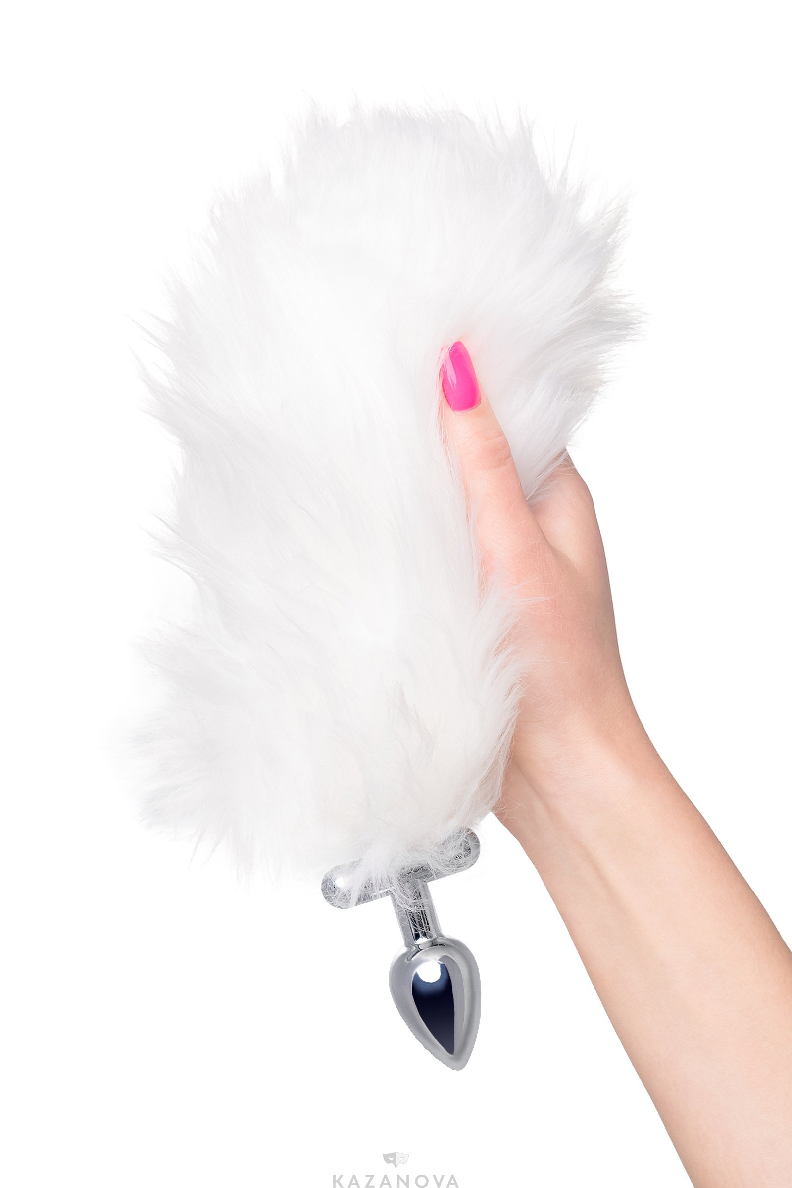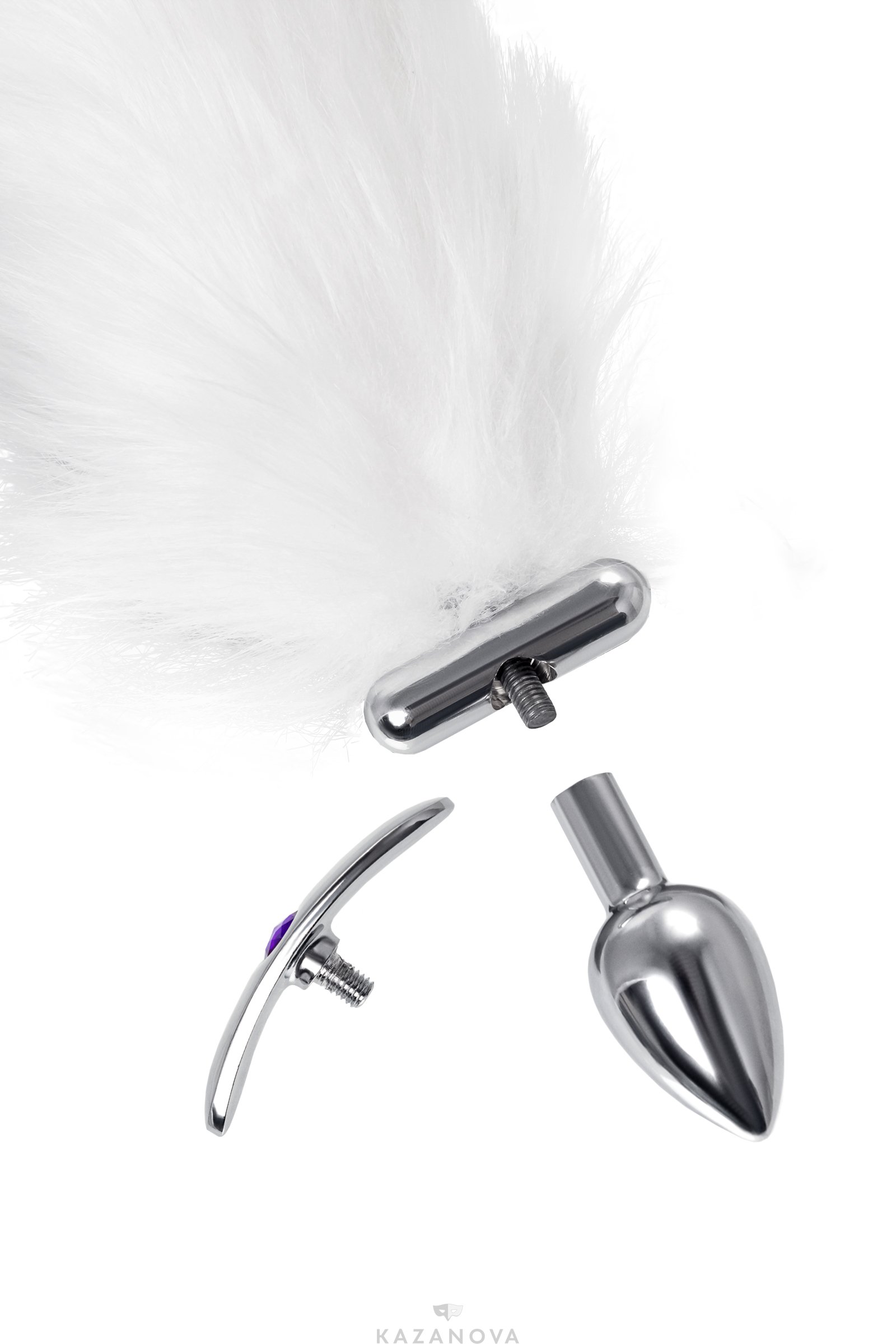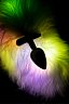 Анальная пробка из металла имеет съемный ограничитель. При желании ты можешь использовать пушистый хвостик с тремя режимами подсветки или классический ограничитель со стразом.