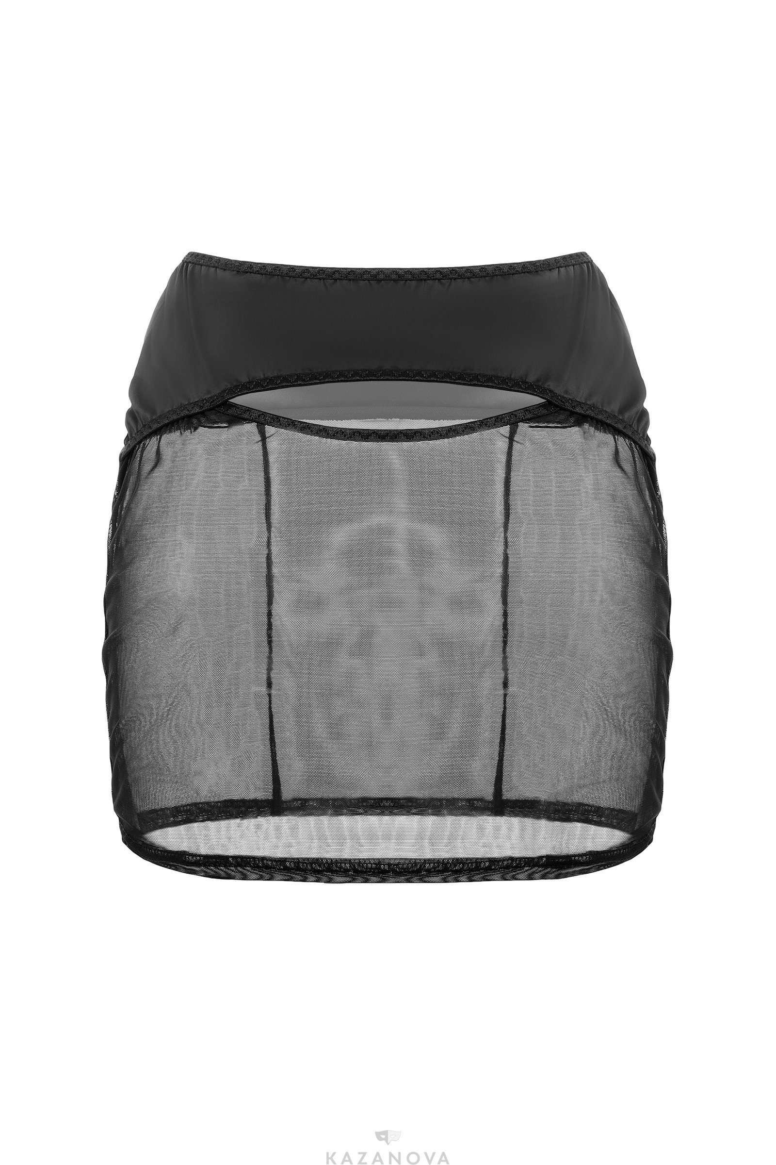 Матовая кокетка и аккуратный вырез сзади подчеркивают движение бедер при каждом шаге. Провокационная длина слегка прикрывает ягодицы. Интимные зоны, закрытые для прикосновений, но доступные взгляду подчеркивают чувственность образа.