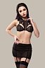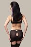 Аккуратный вырез сзади приковывает внимание наблюдателя при каждом шаге. Провокационная длина слегка прикрывает ягодицы. Прозрачность ткани и съемные регулируемые пажи для чулок дополняют чувственный образ.