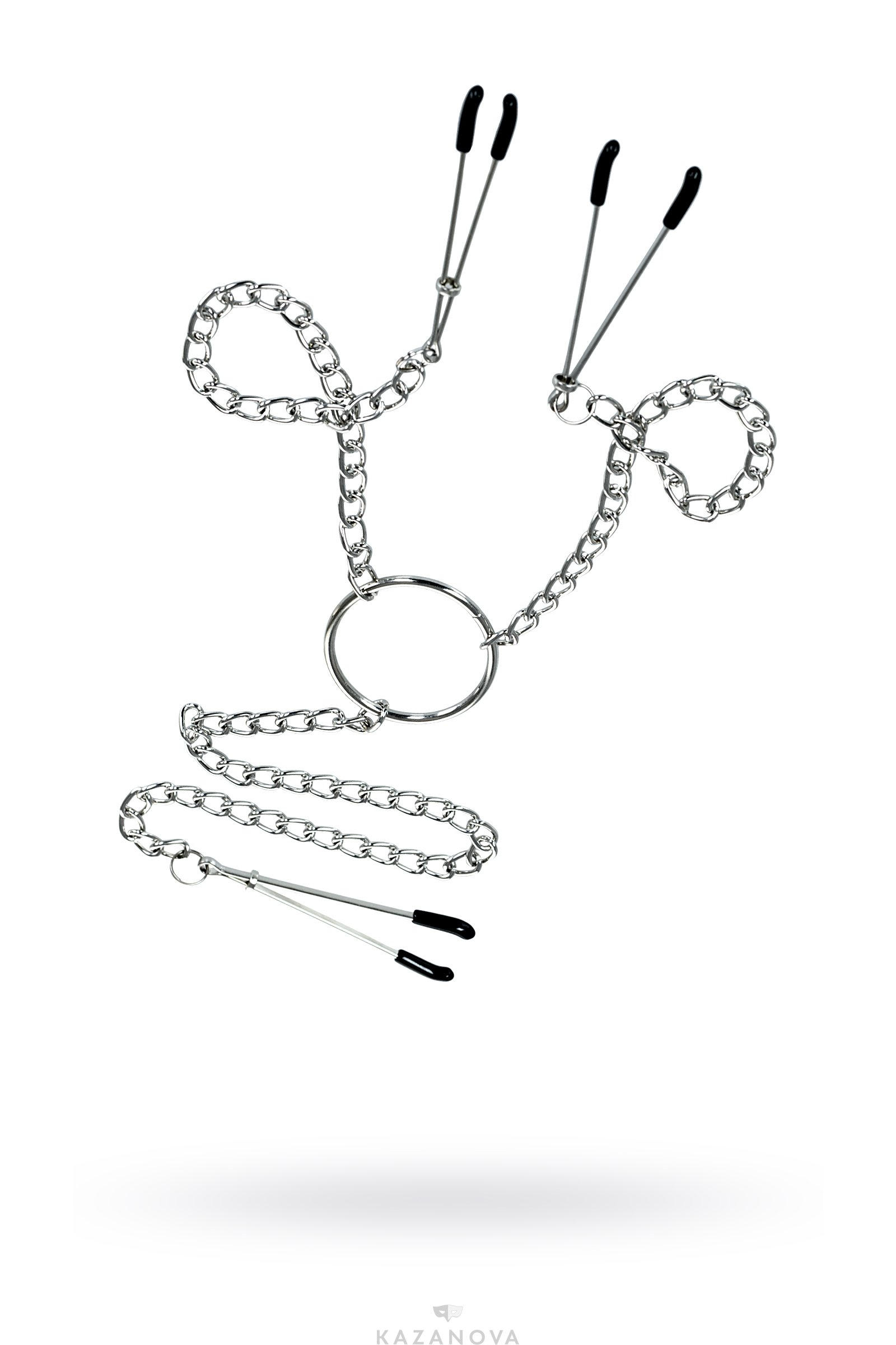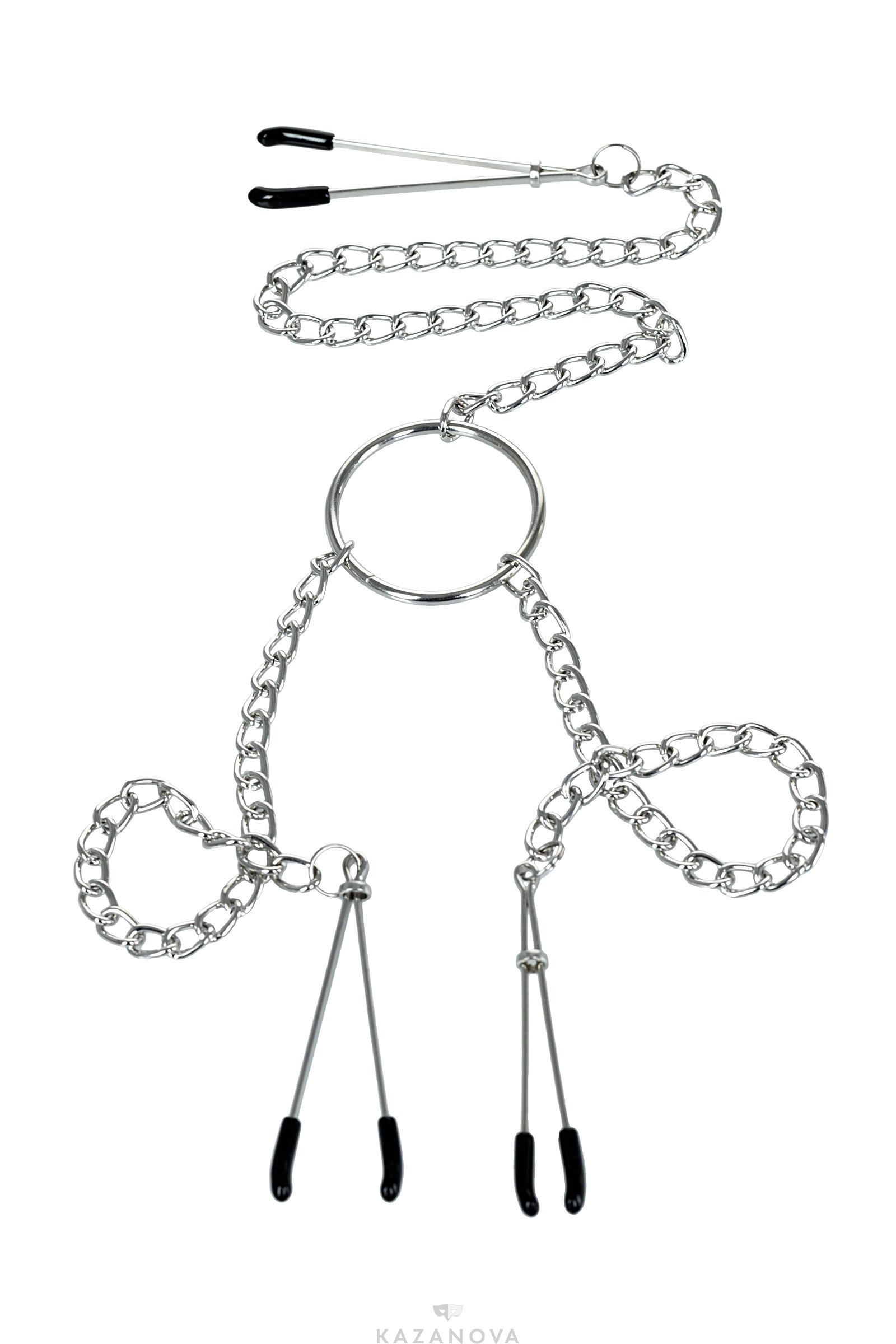 Одно из самых популярных интимных украшений - зажимы для сосков и клитора, соединённые между собой цепочкой.