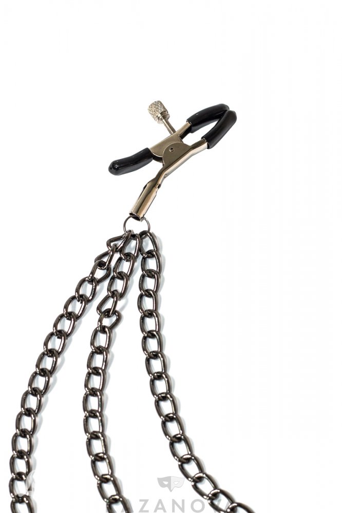 Зажимы для сосков Party Hard Uncensored из металла на 3 цепочках черные