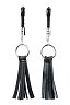 Зажимы изготовлены из металла и декорированы кольцами и кисточками черного цвета.