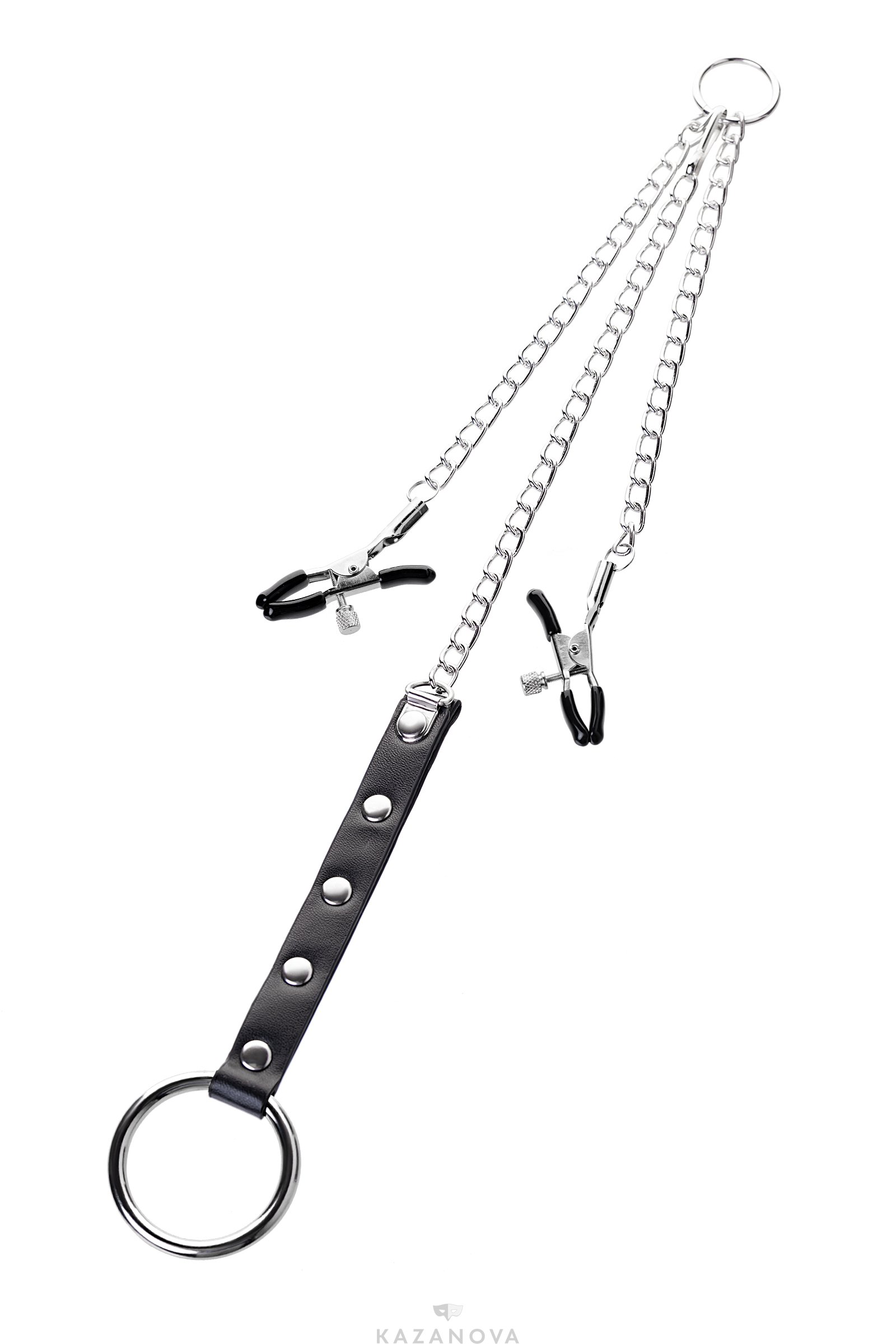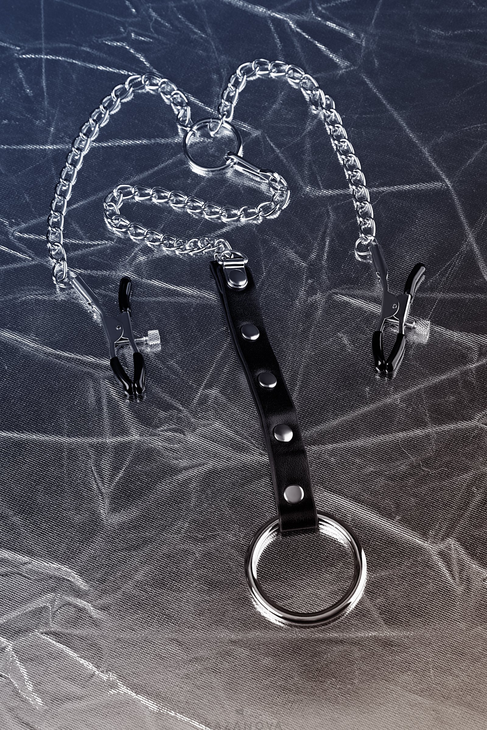 Зажимы для сосков Toyfa Metal металлические с кольцом на пенис