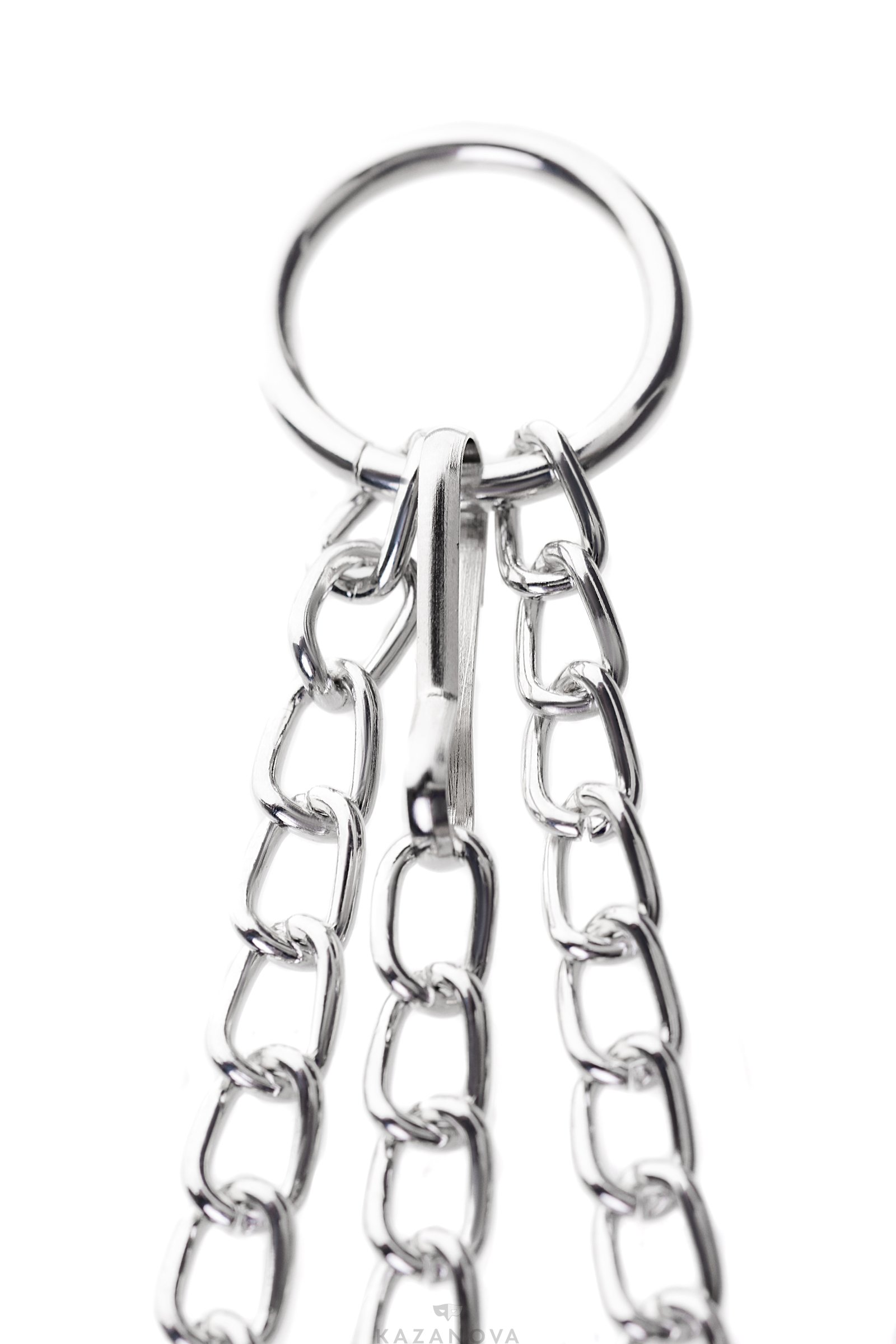 Сила сжатия регулируется болтиками и может быть усилена или ослаблена во время интимной игры. Дополнительное ограничение свободы обеспечивает металлическое кольцо на пенис.