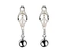 Зажимы изготовлены из металла и декорированы цепочками с грузами. Зажимы оказывают среднее воздействие. Сила сжатия регулируется.