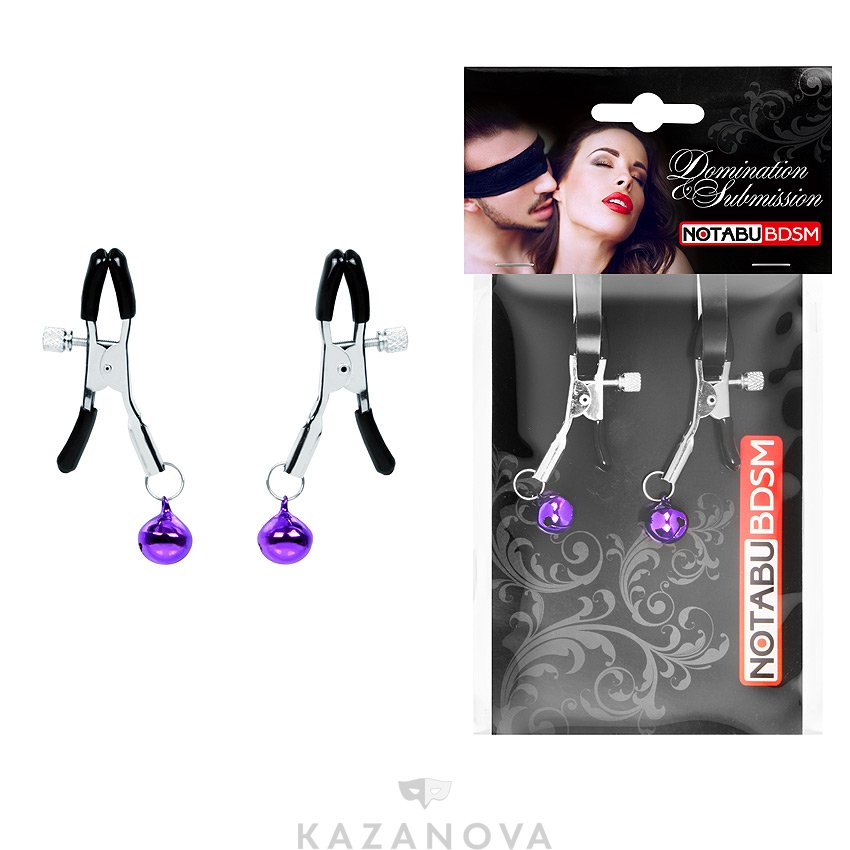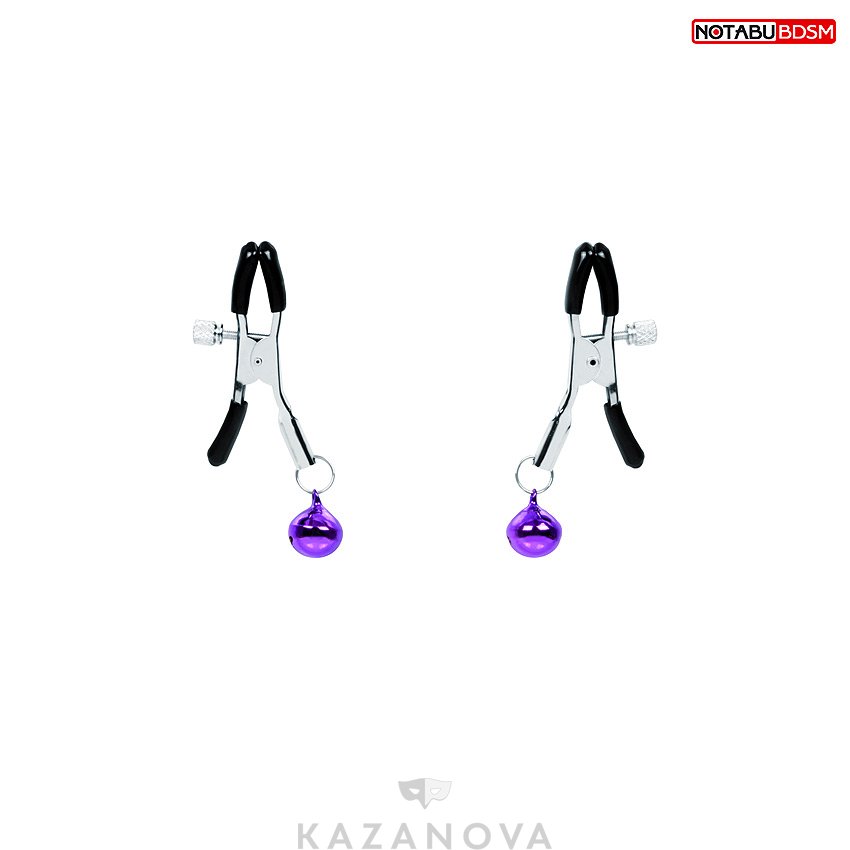 Зажимы Notabu для сосков из металла фиолетовыми бубенчиками