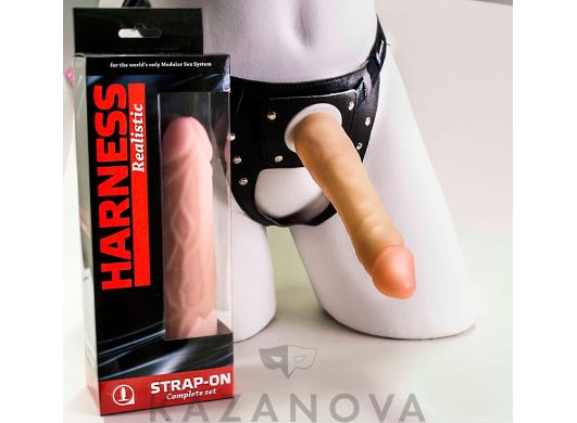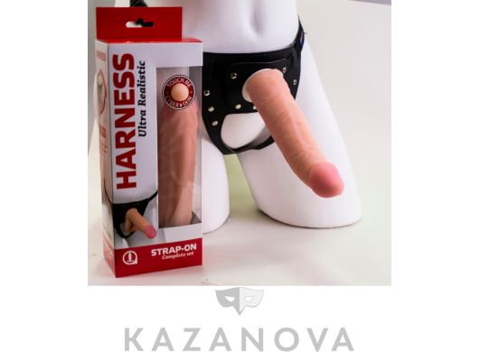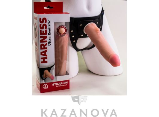 Регулируемые ремни. 2 сменные насадки в комплекте. Страпон без полости.