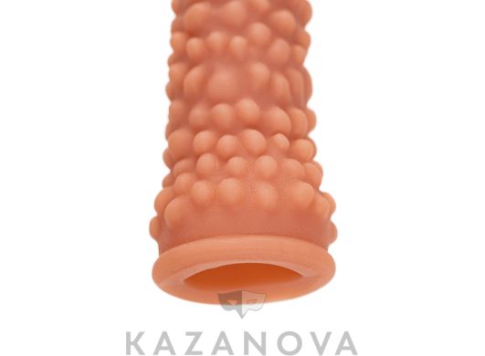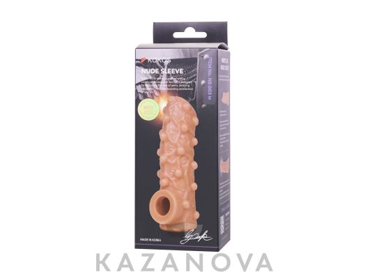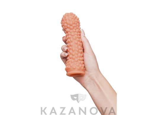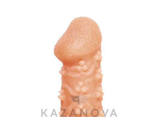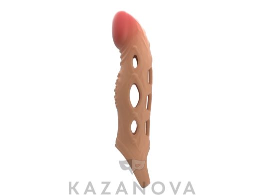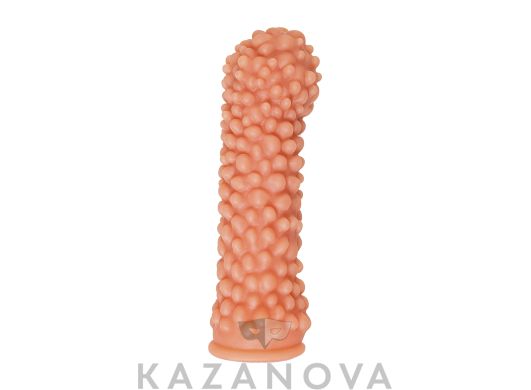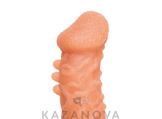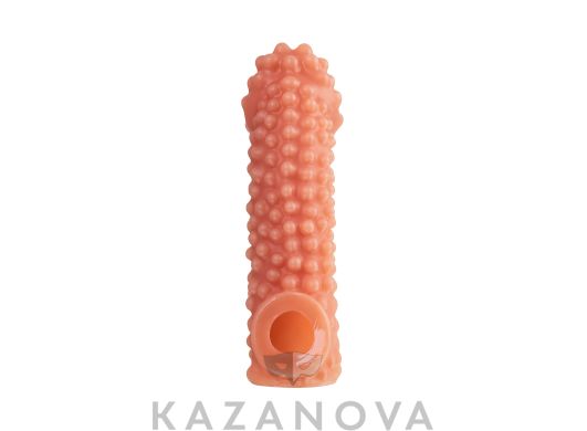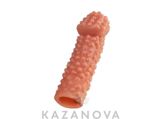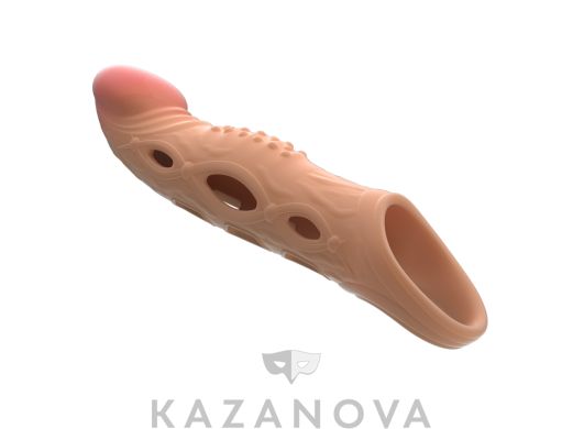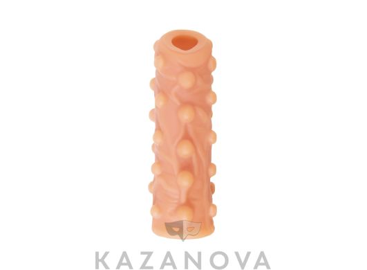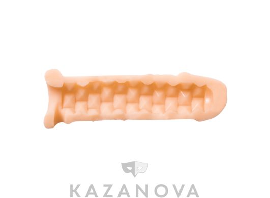 Насадки для увеличения члена изготавливают из киберкожи, силикона или эластомера с разнообразным рельефом. Насадки плотно обхватывают пенис и не соскальзывают во время фрикций.