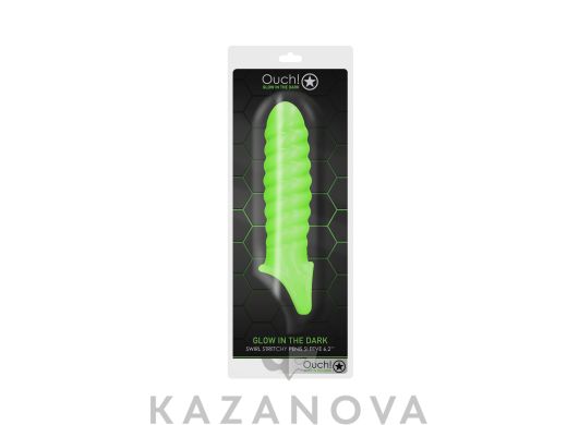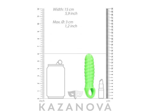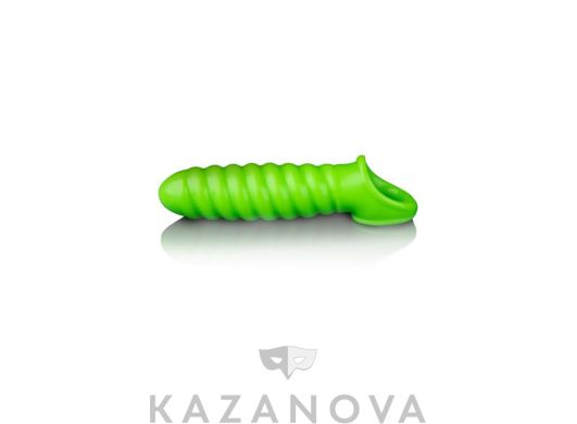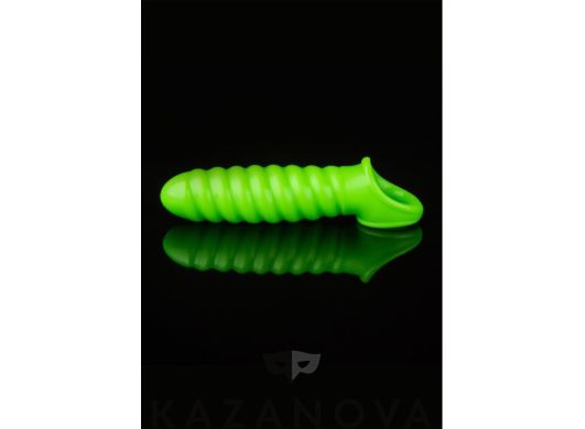 Насадка увеличивающая Ouch Glow ребристая светящаяся зеленая