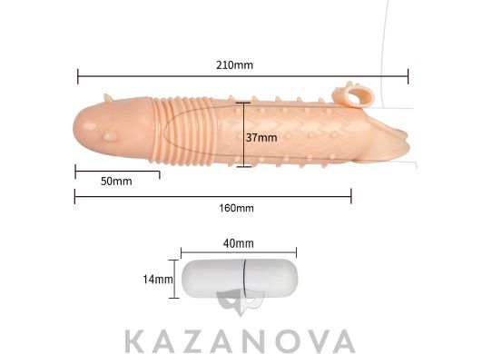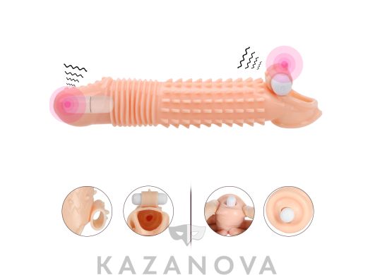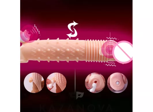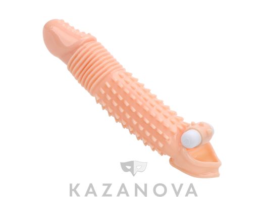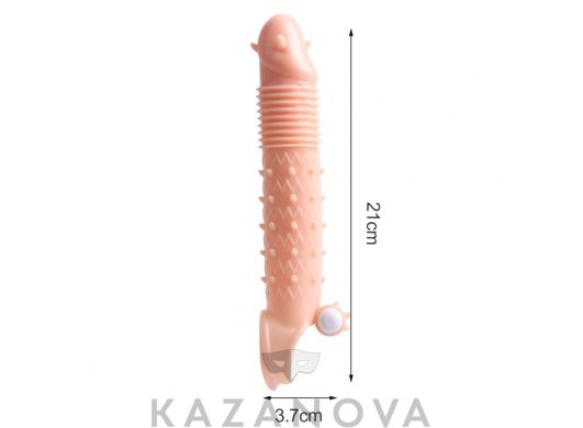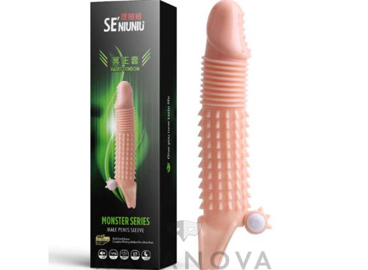 Увеличивающая насадка Monster Series Hades Condom с вибрацией телесная 21 см