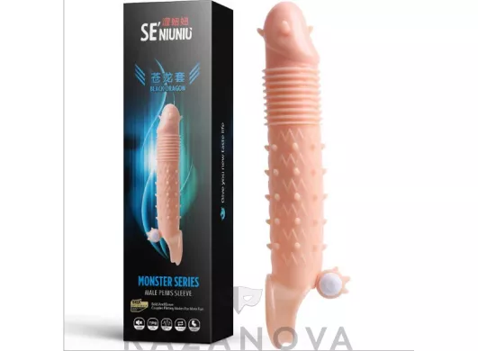 Увеличивающая насадка Monster Series Black Dragon с вибрацией телесная 21 см